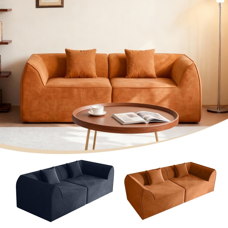 Compressed Memory Foam Sofa with Rectangular Pillow 2-Seater Lounger Daybed for Bedroom, Guest Room, Orange